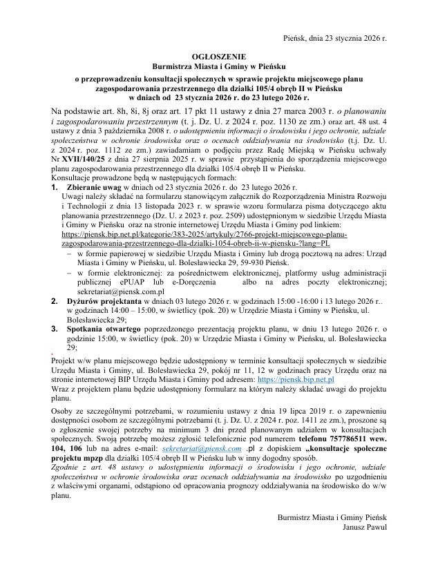 Burmistrz Miasta i Gminy w Pieńsku ogłasza konsult...