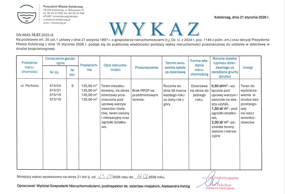Prezydent Miasta Kołobrzeg informuję, że zgodnie z art. 35 ust. 1 ustawy
